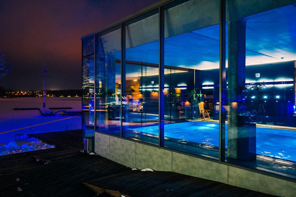 Unikatowa strefa wellness to wymarzona przestrzeń relaksu z niezapomnianym widokiem na panoramę jeziora Ukiel.