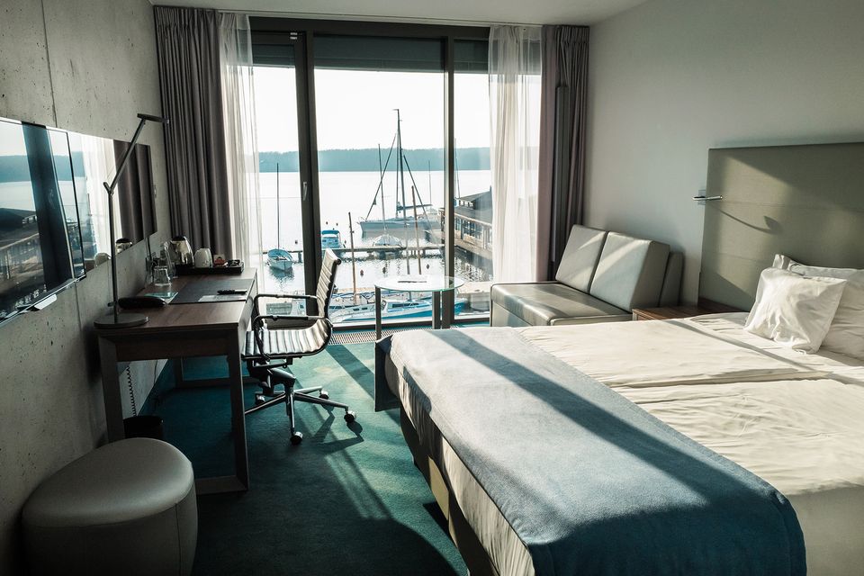 Pięknie położony obiekt z dużymi i nowoczesnym pokojami zaspokoi każdego. Warto wybrać widok na jezioro - miło jest wieczorem popatrzeć na piękne krajobrazy. Śniadania urozmaicone, duży wybór świeżych produktów. Obok hotelu świetna Restauracja Przystań. Fajne miejsce na zregenerowane sił i odpoczynek na łonie natury.